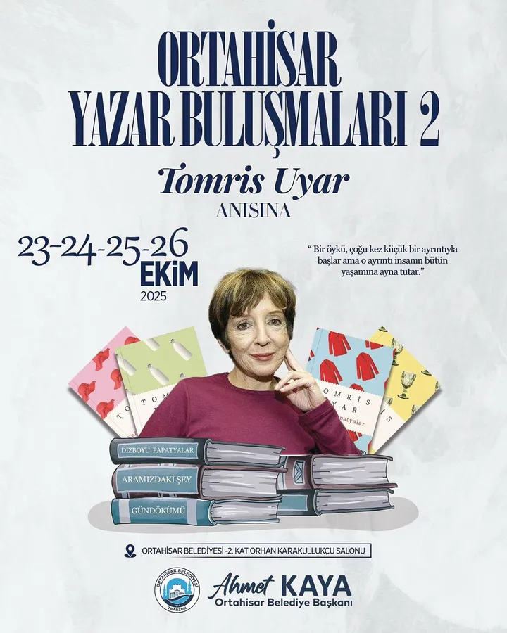 Trabzon Ortahisar Belediyesi, kültür ve sanat etkinliklerine bir yenisini daha ekleyerek, edebiyatseverleri unutulmaz bir deneyime davet ediyor. Her yıl Trabzonlu bir yazarın anısına düzenlenen ve geleneksel hale gelen “Ortahisar Yazar Buluşmaları”nın ikincisi, bu yıl ünlü yazar Tomris Uyar’a adanıyor.