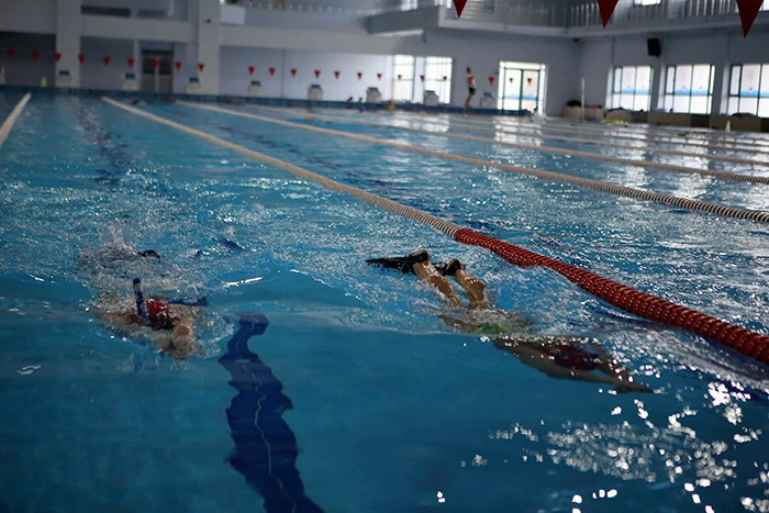 Olimpik Yüzme Havuzu'nda idman yapan 9 sporcu, antrenörler Reşit Çevir, Miraç Ömer Uslu ve Canberk Babaoğlu gözetiminde şampiyonalara hazırlandı.