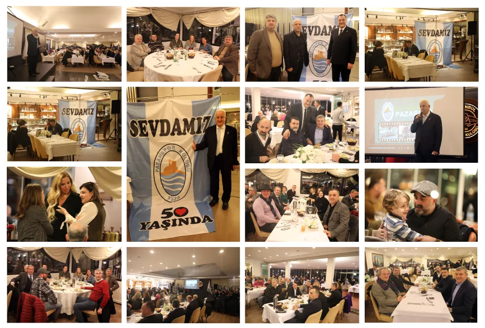 Pazarspor’un 50. Yıl Etkinliğine Sarıyerspor Kulübü yöneticileri, Türk Armatörler Birliği Başkanı Cihan Ergenç, Turyol Başkanı Yunus Can, Pazar Belediye Başkan adayı Neşet Çakır, Pazarlı Siyaset Adamı Alper Taş, Pazarlılar Birliği Başkanı Mustafa Atar ve çok sayıda davetli katıldı. Konuklara mevcut yemek menüsünün yanında Hamsili ekmek, hamsi ve laz böreği ikram edildi