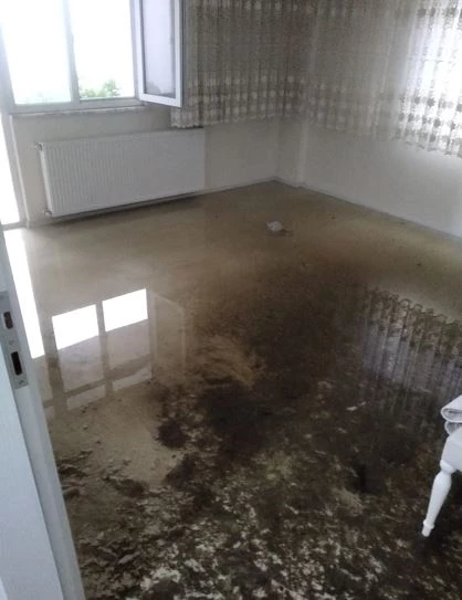 Ekiplerin suyu pompalarla tahliye ettiği evdeki eşyalar hasar gördü.