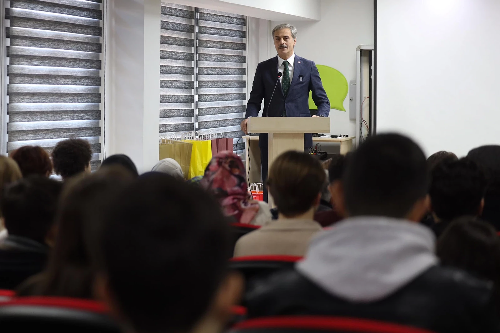 Cemil Meriç Sosyal Bilimler Lisesi öğrencileri ve öğretmenleriyle bir araya gelen Başkan Yusuf Alemdar, “Öğretmenlik dediğimiz kavram bir neslin yarınlarına ışık tutmak demektir. Bugün ülkemizin kaderini belirleyen ve bizleri ileriye taşıyan tüm ufuk yolculuğunda sizlerin önemi çok büyük. Sizlerin omuzlarınızda taşıdığınız yük bu yolculukta paha biçilemez bir değere sahip.Biz sizlere ne kadar hürmet etsek azdır. Buradan öğrenci kardeşlerimize de sesleniyorum. Öğretmenlerimizin değerini bilelim, onlara her zaman saygıyla hareket edelim” dedi.