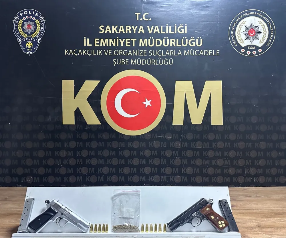 Cumhuriyet Başsavcılığı koordinesinde, Sakarya İl Emniyet Müdürlüğü KOM Şube Müdürlüğü ekiplerince Adapazarı ilçesinde gerçekleştirilen çalışmalarda silah ve uyuşturucu madde ele geçirildi. Edinilen bilgilere göre, Adapazarı ilçesinde yapılan iki ayrı operasyonda T.K. (48) isimli şahsın iş yerinde arama yapıldı. Yapılan aramalarda, 5 adet bulundurma ruhsatlı silahın 6136 sayılı Kanuna aykırı şekilde nakledildiği tespit edilerek silahlara el konuldu. Ayrıca faturası bulunmayan 1 adet kurusıkı tabanca da muhafaza altına alındı. Adapazarı ilçesinde bulunan iki ayrı alkollü mekanda yapılan denetimlerde E.Ö. ve K.Y. isimli şahısların namlu ağızları atışa hazır vaziyette olan 2 adet ruhsatsız tabanca ile 11 adet fişek ele geçirildi. Aynı çalışmalarda Y.E.K. isimli şahsın üzerinde yapılan aramada ise 4,6 gram sentetik cannabinoid maddesi bulundu. Bu çerçevede 4 şüpheli gözaltına alındı.