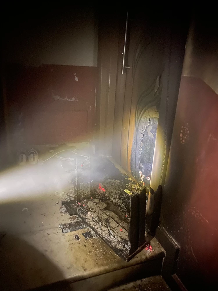 İtfaiye ekipleri tarafından söndürülen yangında evin kapısında hasar oluştu.