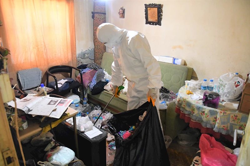 Evden 2 kamyon çöp çıkarıldı, Erol ise Aile ve Sosyal Hizmetler İl Müdürlüğünce bakımevine yerleştirildi.