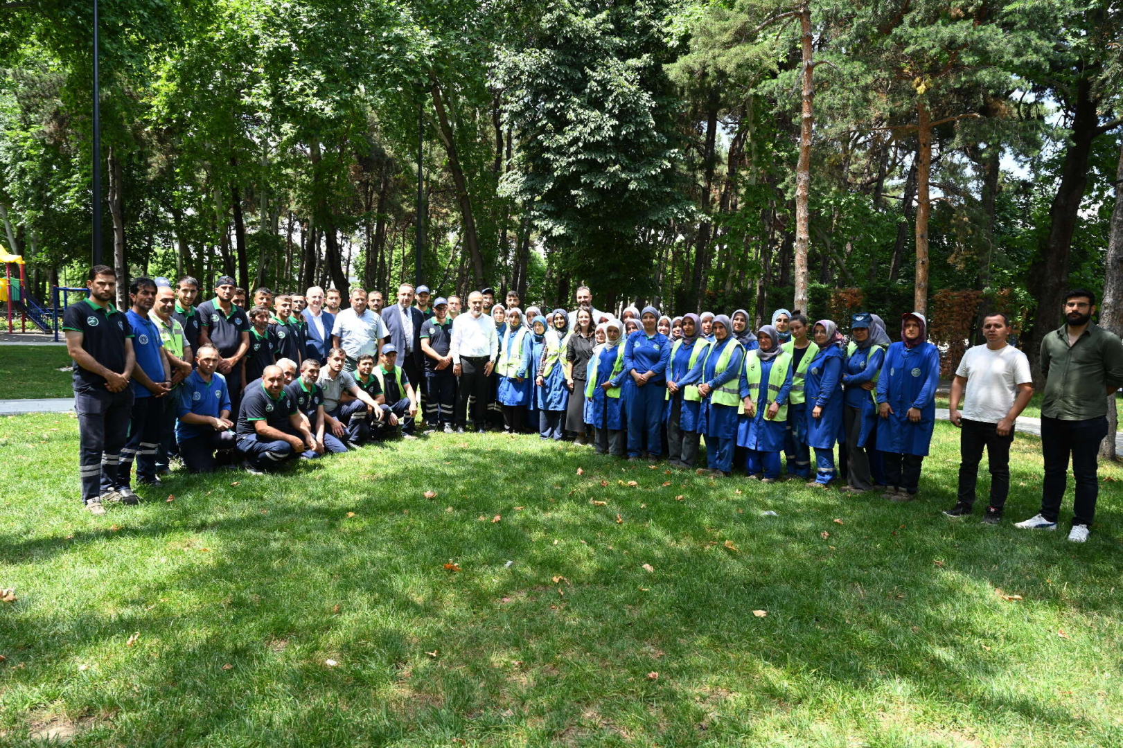Başkan Aktaş, bu arada bayram süresince görev başında olacak saha ekibiyle de bir araya geldi. Merinos Park’ta çevre düzenleme çalışmaları yapan Parklar ve Bahçeler Şube Müdürlüğü ile Tarım Peyzaj A.Ş personelini görevleri başında ziyaret eden Başkan Aktaş, personelin bayramını kutladı. Vatandaşların huzurlu ve sorunsuz bir bayram geçirmesi için Büyükşehir ekiplerinin bayram süresince sahada olacağını kaydeden Başkan Aktaş, “Tatil olmasına rağmen Bursa'yı güzelleştirmek için emeğini, gayretini, alın terini ortaya koyan kardeşlerimiz var. Park bahçeler işçilerimiz var, Tarım A.Ş. işçilerimiz var. İnşallah Bursa'mız bu yaz yapacağımız çalışmalarla daha da yeşile bürünecek, daha da güzelleşecek. Ben bu vesileyle tüm ekip arkadaşlarıma yürekten teşekkür ediyorum. Herkese hayırlı bayramlar diliyorum” diye konuştu.
