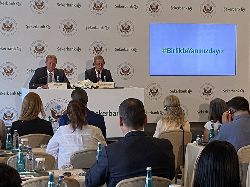 DFC kredisine ilişkin düzenlenen basın toplantısı, Şekerbank Yönetim Kurulu Başkanı Hasan Basri Göktan'ın ev sahipliğinde, ABD Ankara Büyükelçisi Jeffry Flake ve ABD'nin İstanbul Başkonsolosu Julie Eadeh katılımıyla gerçekleştirildi.