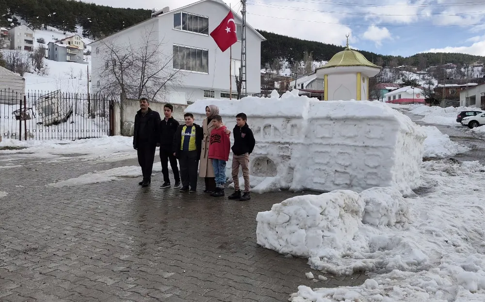 Gündem olan ekibin İstanbul ziyaretinin ardından köy meydanında yaptıkları tarihi Sivas Valilik binasının kardan maketi de oldukça ilgi gördü.