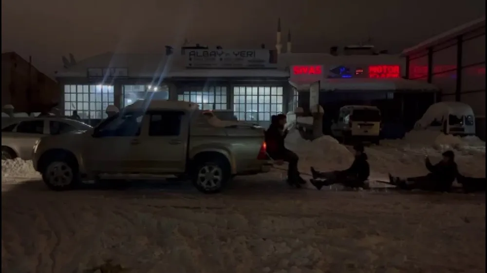 Sivas'ta sanayi sitesinde esnaflık yapan Tanju Kaya, etkili olan kar yağışını eğlenceye dönüştürdü. İş yerinde birlikte çalıştığı çırakların karın tadını çıkarmak istediklerini söylemesi üzerine Kaya, aracın arkasına halat bağlayarak lastiklerin üzerine oturan çırakları karda kaydırdı. Beyaza bürünen sanayi sitesi, renkli anlara sahne oldu. Çıraklar doyasıya eğlendi.