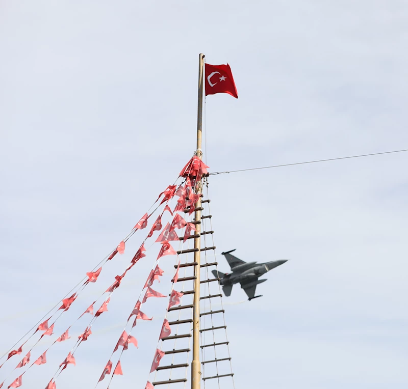 Sahilde toplanan binlerce kişi, SOLOTÜRK pilotlarının yaptığı manevraları alkışlarla ve ellerindeki Türk bayraklarını sallayarak izledi.