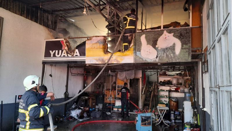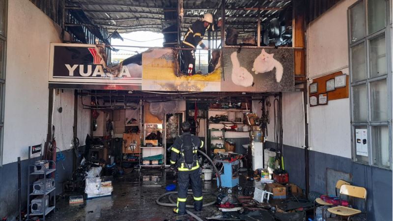 Yavuz Sultan Selim Mahallesi Küçük Sanayi Sitesi'nde Emin Ukay'a ait tamirhanenin ofis bölümünde henüz belirlenemeyen nedenle yangın çıktı.