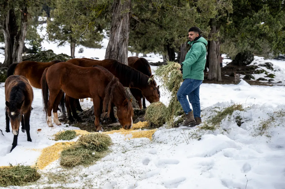 Mersin Büyükşehir Belediyesi ekipleri, Toros Dağlarının yüksek kesimlerinde etkili olan kış şartları nedeniyle besin bulmakta zorlanan yılkı atları ve yabani köpekler için Karboğazı mevkiinde planlı besleme çalışması gerçekleştirdi.