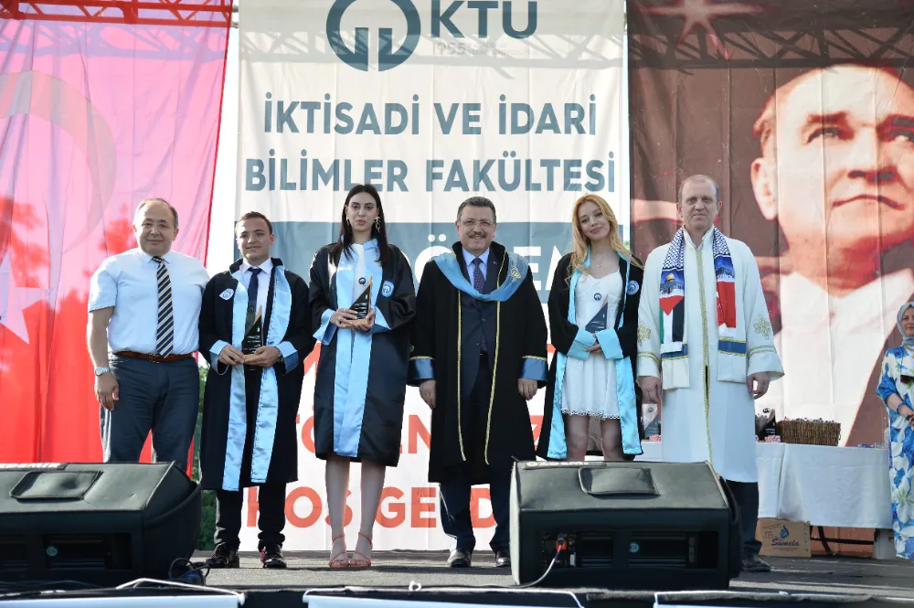 KTÜ Rektörü Hamdullah Çuvalcı ise mezunlara hitaben, "KTÜ'den mezun olmanın gururunu yaşayın, ilim ve bilim deryasında kendinizi geliştirmeye devam edin" ifadelerini kullandı. Tören, Mehter Takımı'nın gösterisiyle renklendi ve Başkan Genç'e teşekkürler sunuldu.
