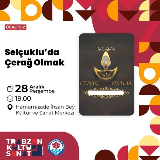Trabzon Büyükşehir Belediyesi, kültür ve sanat etkinliklerine devam ediyor. Bu kapsamda, Hamamizade İhsan Bey Kültür Merkezi'nde Selçuklu’da Çerağ Olmak filmi izleyiciyle buluşacak.
