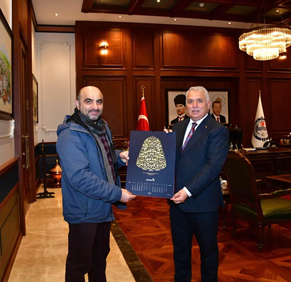 Trabzon Valisi Aziz Yıldırım, Albaraka Türk Sanat Danışmanı Abdusselam Ferşatoğlu’nu makamında kabul etti. Ziyarette Ferşatoğlu, Albaraka Türk’ün 40. yılına özel olarak hazırlanan takvimi Vali Yıldırım’a takdim etti.Görüşme sırasında, Ferşatoğlu, Albaraka Türk’ün sanat ve kültür alanındaki çalışmalarına dair önemli bilgiler verdi. Kurumun sanata ve sanatçılara sağladığı destekleri detaylı bir şekilde anlatan Ferşatoğlu, kültürel projelere ve sanatın toplumsal gelişim üzerindeki etkilerine dikkat çekti.Vali Yıldırım, sanat ve kültür alanındaki projelerin toplum üzerinde olumlu etkiler yaratacağına vurgu yaparak, Albaraka Türk’ün bu alandaki çalışmalarına değerli katkılar sunduğunu belirtti ve Ferşatoğlu’na çalışmalarında başarılar diledi.