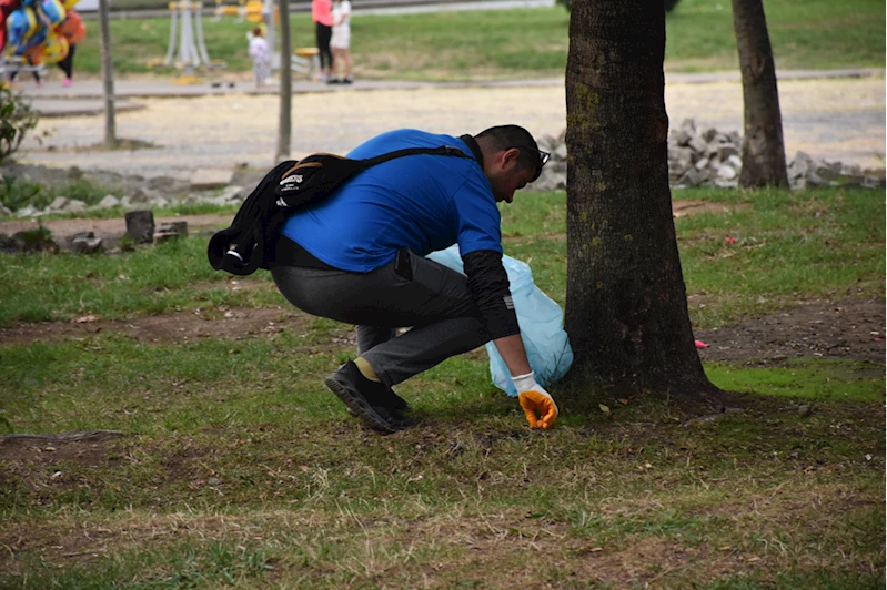 Eldiven takarak çöp poşetleriyle alana dağılan gönüllüler, atık topladı.