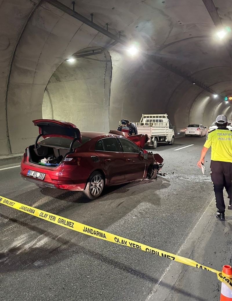 Maçka ilçesindeki Şehit Eren Bülbül Tüneli'nden Trabzon istikametine ilerleyen Hüseyin Hilmi Bahçekapılı'nın (76) kullandığı 61 AFL 350 plakalı otomobil, iş makinesi ile çarpıştı.