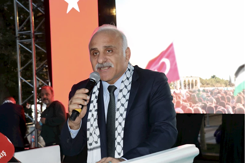 "Daha dün kendilerinin soykırıma uğradığını söyleyerek mağduriyetten beslenen işgalci İsrail, dünyanın gözleri önünde Gazzeli Müslümanlara, bebek, çocuk, kadın, yaşlı demeden büyük bir katliam yapıyor. Hak, hukuk ve ahlak tanımadan evleri, hastaneleri, mektepleri, ibadethaneleri yerle bir ediyor. Maksadına ulaşmak için her şeyi mubah görüyor. Yıllarca topraklarını gasp ettiği Filistinli kardeşlerimize insanlık dışı muameleleri reva görüyor. Orantısız bir güçle terör estiriyor, vahşet sergiliyor."
