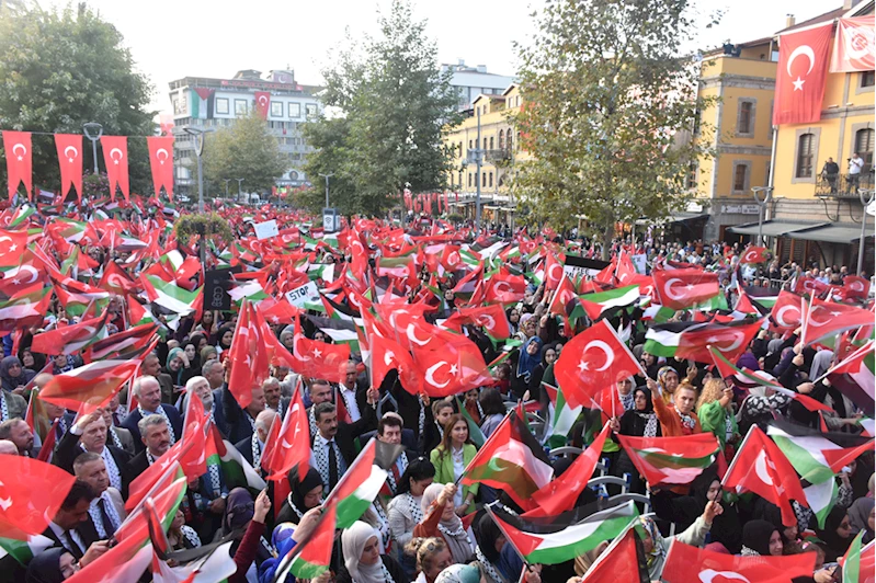 Kudüs Platformunca 15 Temmuz Şehitler ve Hürriyet Parkı'nda düzenlenen mitinge katılanlar, Filistin'e destek sloganları attı.