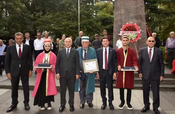 Trabzon’da 37. Ahilik Haftası etkinlikleri çerçevesinde düzenlenen törende, 2024 yılının ahisi, kalfası ve çırağı ödüllerini aldı. 23-29 Eylül tarihleri arasında gerçekleştirilen etkinlikler, Uzunsokak’ta Mehter Takımı eşliğinde yapılan kortej yürüyüşüyle başladı. Ardından 15 Temmuz Şehitler ve Hürriyet Parkı’nda düzenlenen törene, Trabzon Valisi Aziz Yıldırım, Büyükşehir Belediye Başkanı Ahmet Metin Genç, İl Jandarma Komutanı Tuğgeneral Bahittin Murat Yakın ve çok sayıda esnaf ile sanatkâr katıldı.
