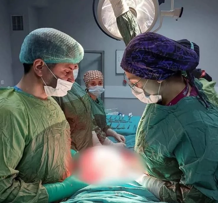 Kadın Hastalıkları ve Doğum Uzmanı Doç. Dr. Recep Erin, şişlik nedeni ile kendisine başvuran 59 yaşındaki Seliye Bahran,’ın yumurtalıklarında kist olduğunu tespit etti. Kistin yaklaşık 6 kilo ve 40 santim civarında olduğunu belirten Erin, ilk kez böyle bir vaka ile karşılaştığını söylerken “Bu vaka bizi korkuttu, kanser olmasından korktuk. O yüzden tetkikleri uzun sürdü. En büyük korkumuz da o olduğu için patalog doktorumuz da ameliyatta hazır bulundu. Kitleyi çıkarır çıkarmaz ona gönderdik. Gerçekten çok büyük bir kitleydi, neredeyse yeni doğan bir bebekten büyüktü. Sonucun iyi olması gerçekten zor bir ameliyattı. Hastamızın mutlu olması sonuç olarak bizi de mutlu etti” dedi.