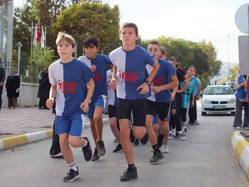 Mehmet Uzun Spor Salonu önünde toplanan öğrenciler, ellerindeki Türk bayrakları ile Cumhuriyet Caddesi'nden yürürken, sporcular da Cumhuriyet Meydanı'na kadar koştu.