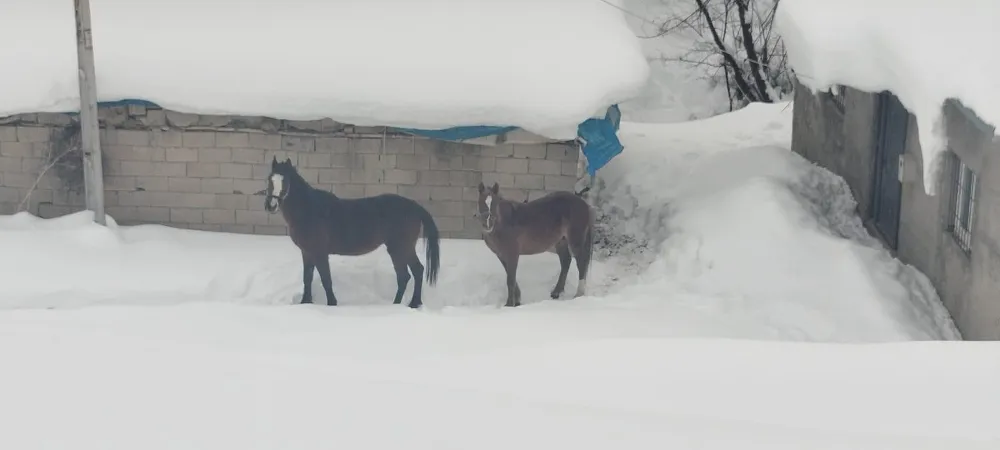 Hakkari’nin Yüksekova ilçesinde, kışın kimsenin yaşamadığı ve yolu kar nedeniyle kapanan sınır köyünde mahsur kalan 2 at, ekiplerin çalışmasıyla kurtarılarak koruma altına alındı.