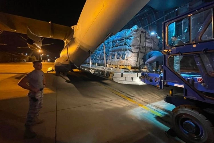İlk etapta gönderilecek 10 bin adet çadır, 50 bin gıda kolisi, 50 bin hijyen ve 10 bin bebek malzemesinden oluşan yardım malzemesinin gönderilmesi işlemine bugün de devam edilecek.