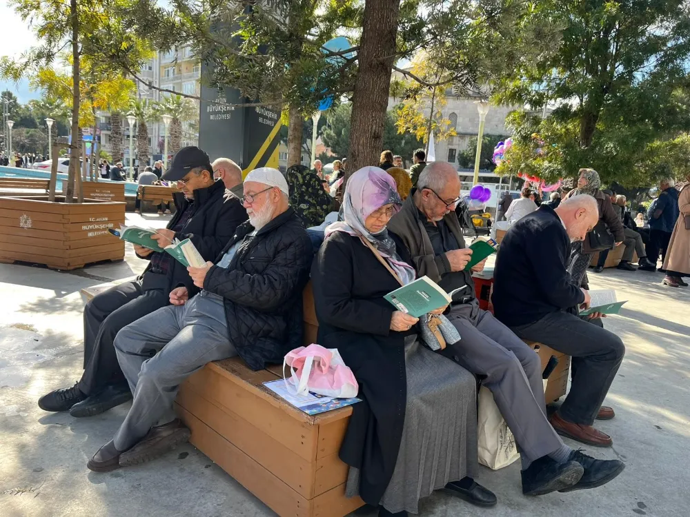 Ufka Yolculuk Bilgi ve Kültür Yarışması kapsamında Aydın Atatürk Kent Meydanı'nda düzenlenen etkinlikte vatandaşlar aynı anda kitap okuyarak bilgi ve kültür yolculuğunda buluştu.