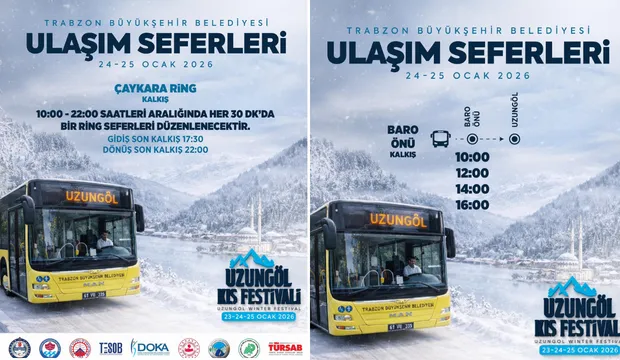 Festival süresince, Trabzon’un farklı noktalarından Uzungöl’e karşılıklı ücretsiz seferler düzenlenecek. Gidiş seferleri ana kalkış saatleri 10.00, 12.00, 14.00 ve 16.00 olarak belirlendi. Sahil hattı üzerinden yapılacak seferler ise şöyle: