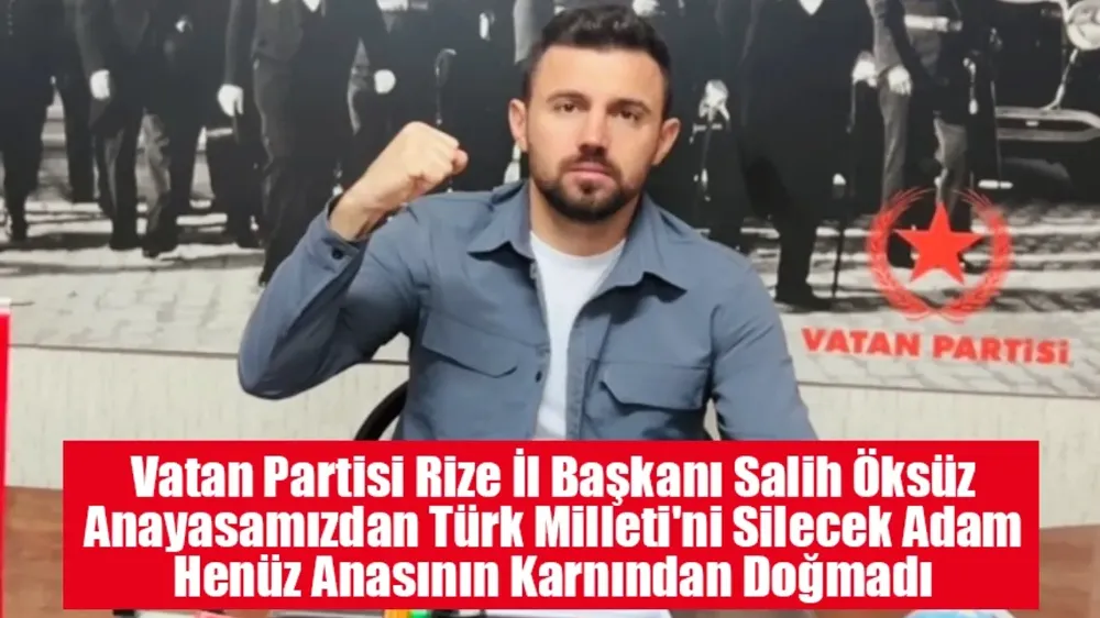 Gündemde olan anayasa değişiklii tartışmaları ile ilgili Vatan Partisi Rize İl Başkanı Salih Öksüz bir açıklama yaparak özellikle 3. madde ile ilgili sert konuştu. TBMM Başkanı Numan Kurtulmuş açıklamalarını hedef alan Başkan Öksüz: " Milletimiz ekonomik bunalımdan kanser olmuş, işsizlik rakamları 11 milyona dayanmış, evlilik oranları gün geçtikçe düşmeye başlamış ama meclis başkanımız Numan Kurtulmuş'un tek derdi anayasamızın 3'üncü maddesi olmuş. Neymiş efendim darbe anayasasından kurtulup sivil anayasa ile ülkemize tam demokrasi getireceklermiş.