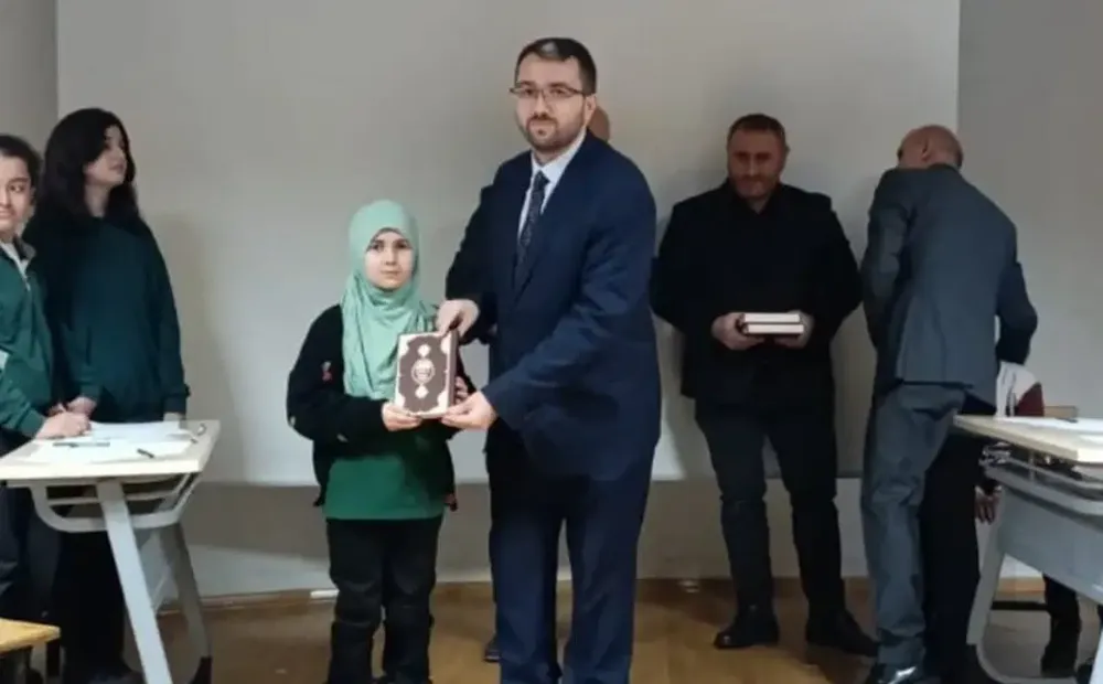 Etkinlik kapsamında ayrıca seçmeli ders olarak Kur’an-ı Kerim dersini tercih eden 5. sınıf öğrencilerine İlçe Müftülüğü tarafından Kur’an-ı Kerim hediye edildi. Kur’an-ı Kerim’in insan hayatına rehberlik eden, ahlaki değerleri güçlendiren ve manevi gelişime yön veren ilahi bir kitap olduğuna dikkat çekilirken, küçük yaşta Kur’an’la buluşmanın çocukların değer dünyasının inşasında önemli bir kazanım olduğu vurgulandı.