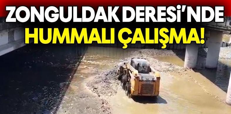 Zonguldak Belediyesi, dere içine soktuğu küçük iş makinası (bobket) ile birikintileri toplayıp, bend oluşturulmasını ve taşkın sebeplerini önlüyor.